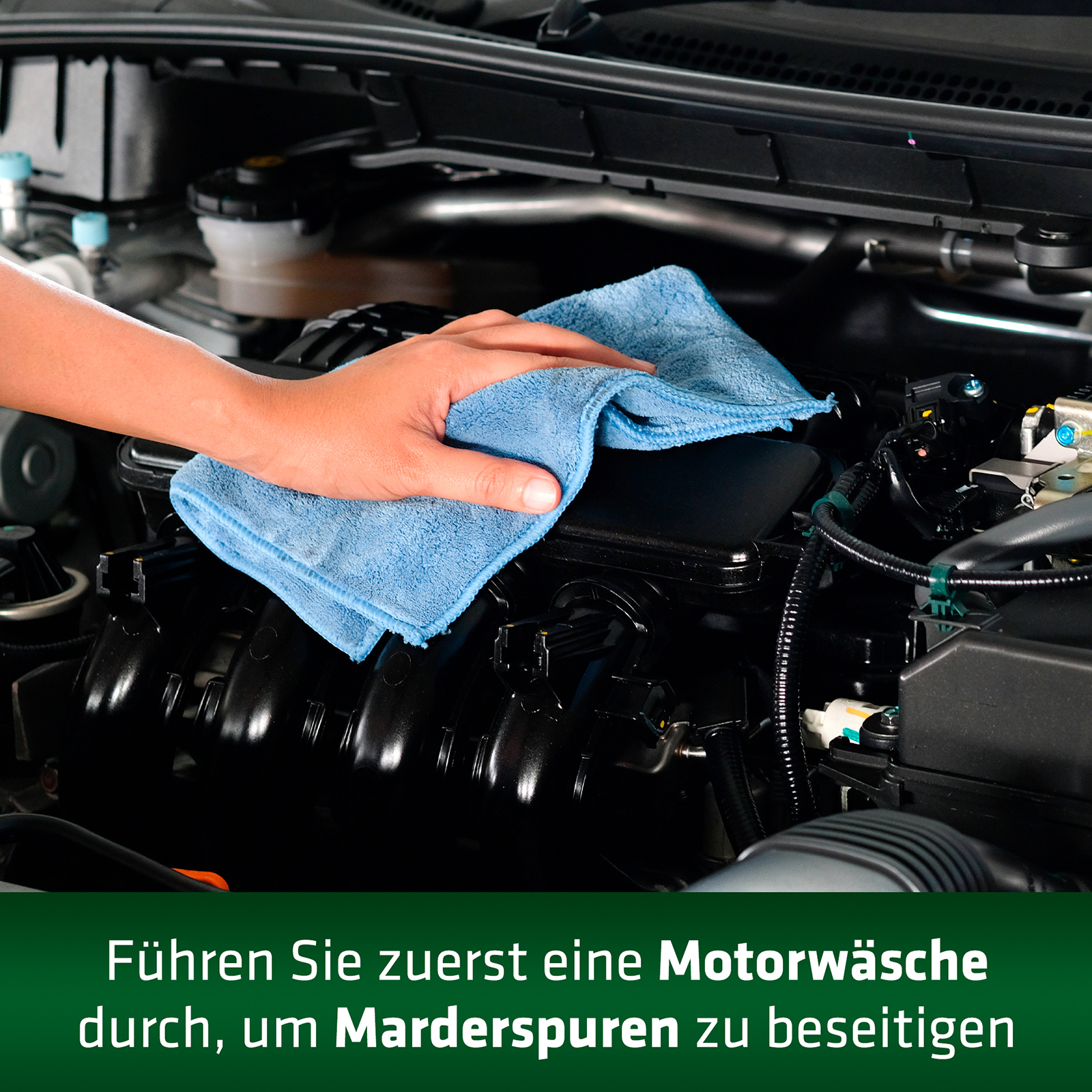 Idéal pour éviter les dégâts importants tels que câbles ou conduites rongés. Avant l’installation, nous recommandons un nettoyage complet du moteur pour supprimer les marquages olfactifs.