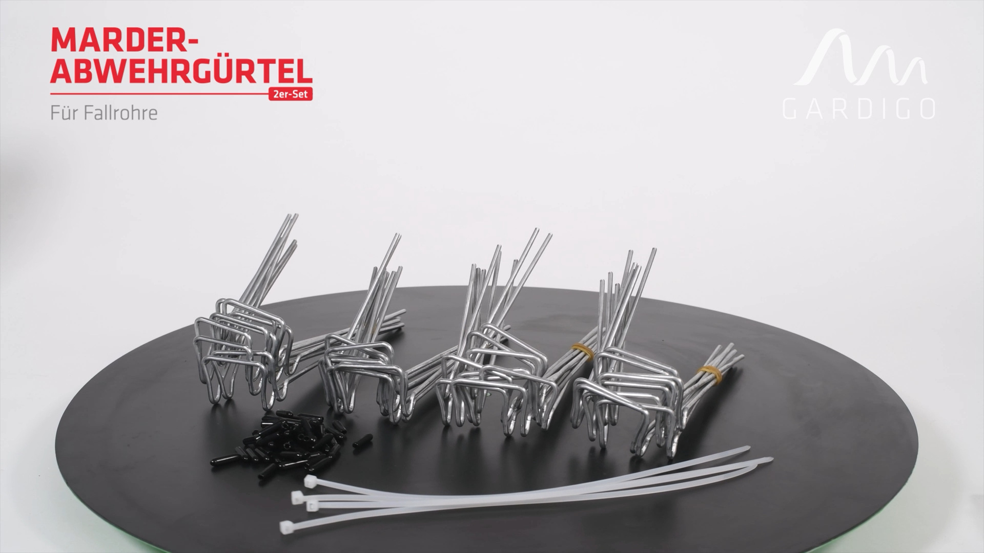 - Contenu de la livraison : 36 éléments en fil métallique (pour 2 ceintures anti-fouine avec 18 éléments chacune), 74 embouts en caoutchouc, 4 attaches de câble