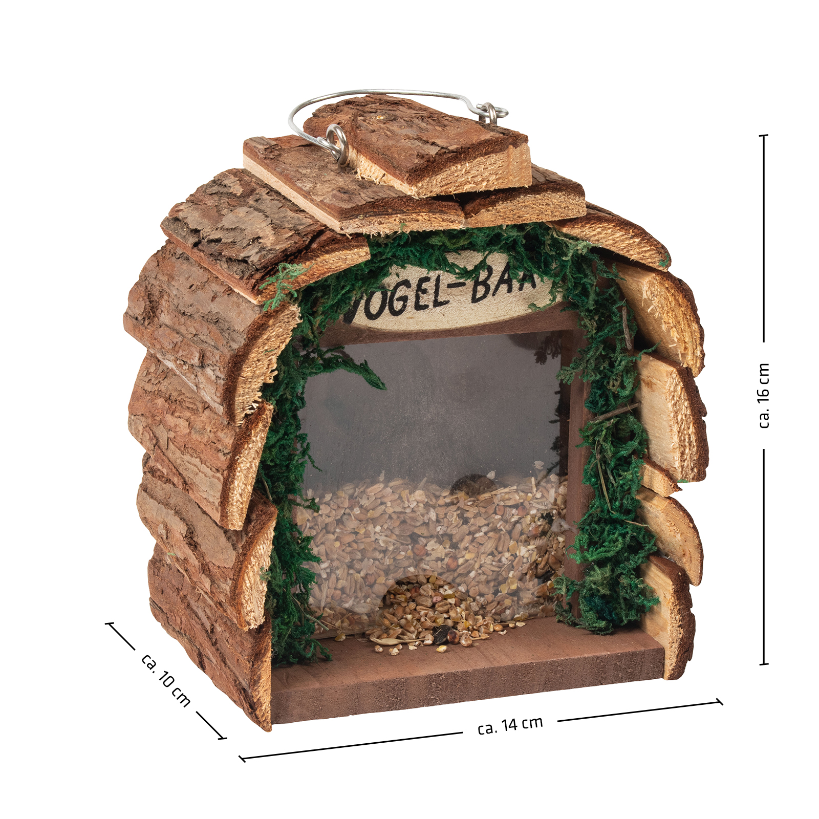 Avec la "Bar à oiseaux", vous pouvez attirer des rouge-gorges, pinsons, bouvreuils, moineaux et bien d’autres espèces. Il suffit de remplir la mangeoire avec un mélange varié de graines et vous pourrez rapidement admirer ces petits visiteurs ailés. Suspendez la mangeoire à temps avant les premières chutes de neige, moment où les oiseaux choisissent leur lieu d’alimentation pour l’hiver et y restent fidèles. Placez-la dans un endroit protégé, afin que la nourriture et les oiseaux soient à l’abri des intempéries.