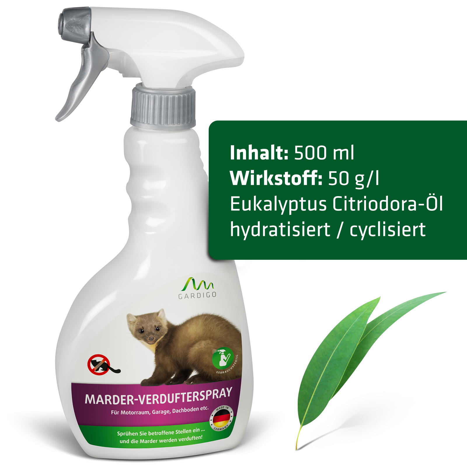 Informations sur le produit "Marderspray mit Eukalyptus citriodora Öl | Vergrämungsmittel gegen Marder | Verdufter-Spray"