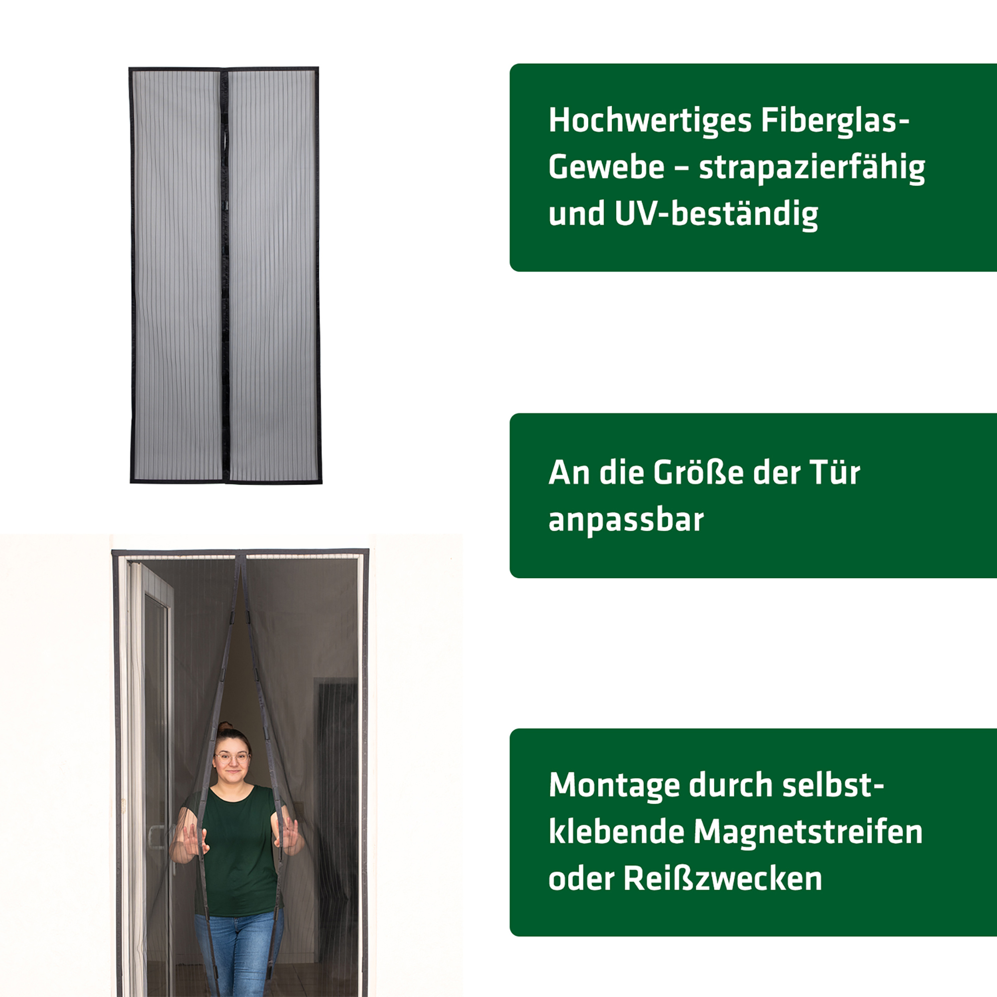 La moustiquaire s’ouvre au centre et se referme automatiquement grâce à ses fermetures magnétiques. Même les enfants ou animaux domestiques peuvent passer facilement.