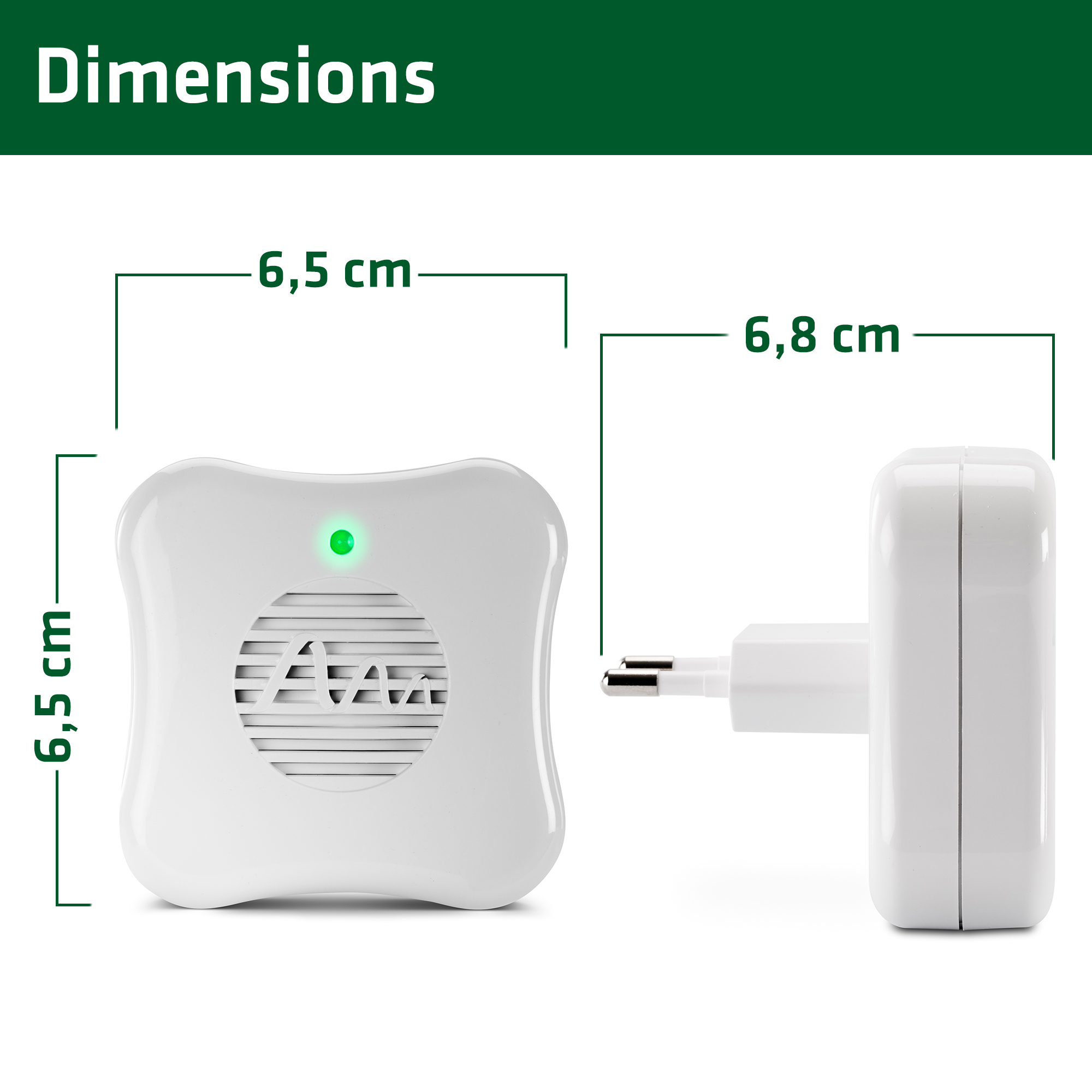 Le répulsif mural à ultrasons de GARDIGO agit en continu pour maintenir les araignées à distance. Il suffit de le brancher dans une prise et de le laisser fonctionner. Une alternative silencieuse et sans cruauté pour garder votre maison propre et sereine.