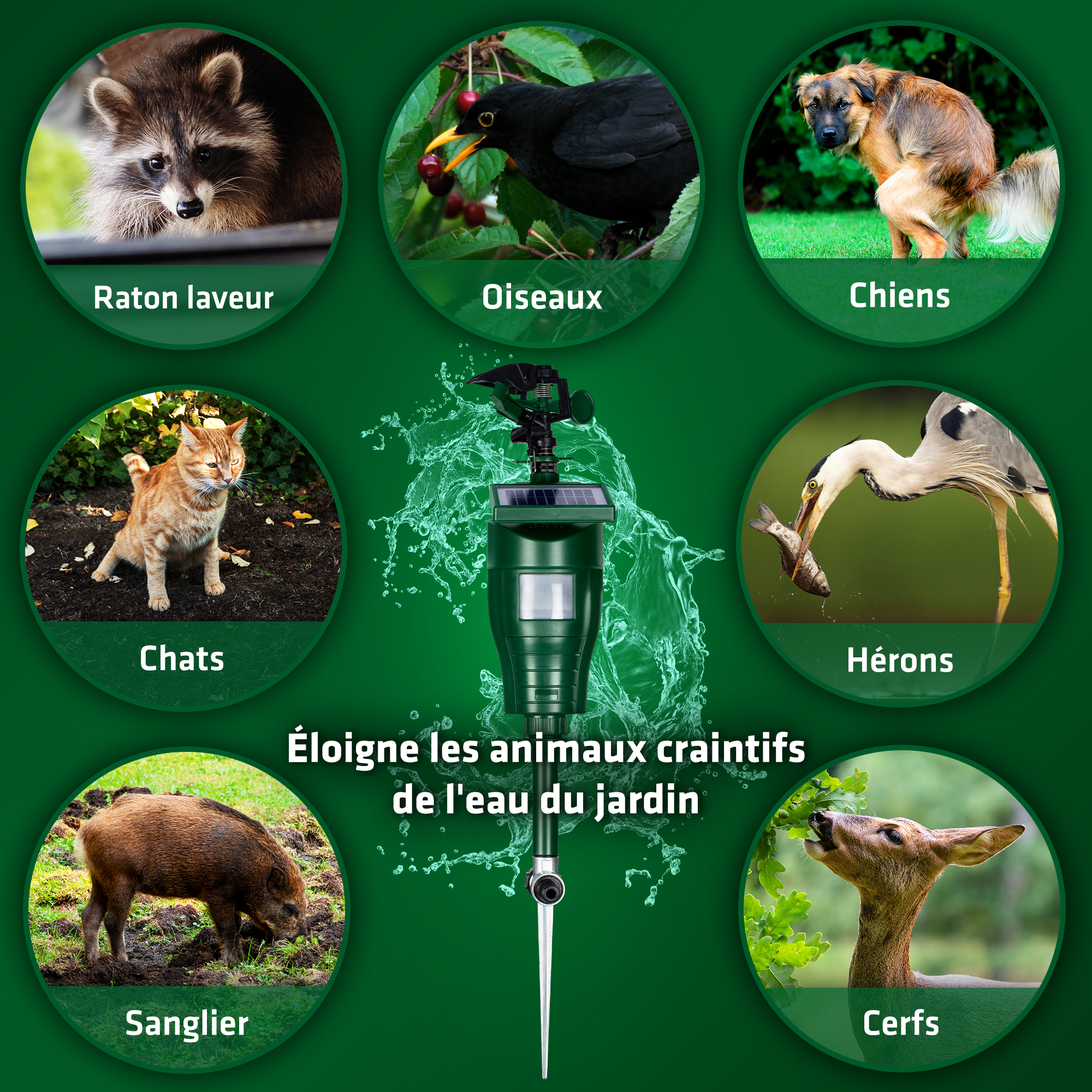 Répulsif à jets d'eau solaire pour animaux I Dissuasif oiseaux, répulsif chats et chiens