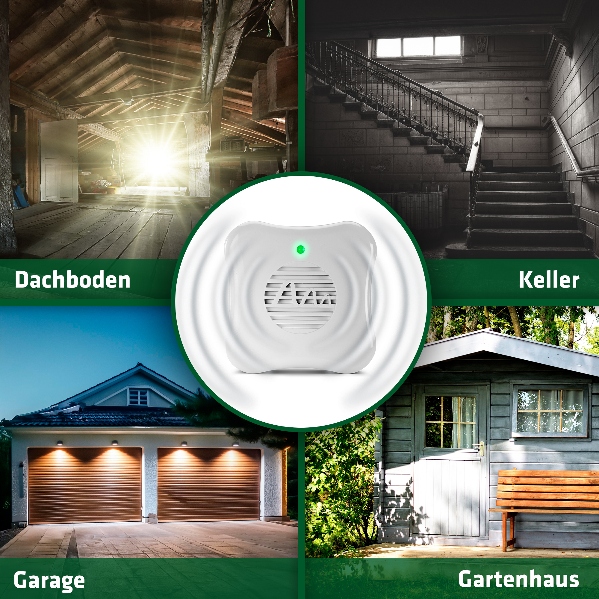 Ich fand es sehr effektiv, von Zeit zu Zeit betreten Mäuse meine Garage und mit diesem Gerät bemerkte ich, dass es sie herausnimmt und sie auch nicht hereinlässt, indem sie sie mit den Wellen abwehren, die es ausstrahlt.