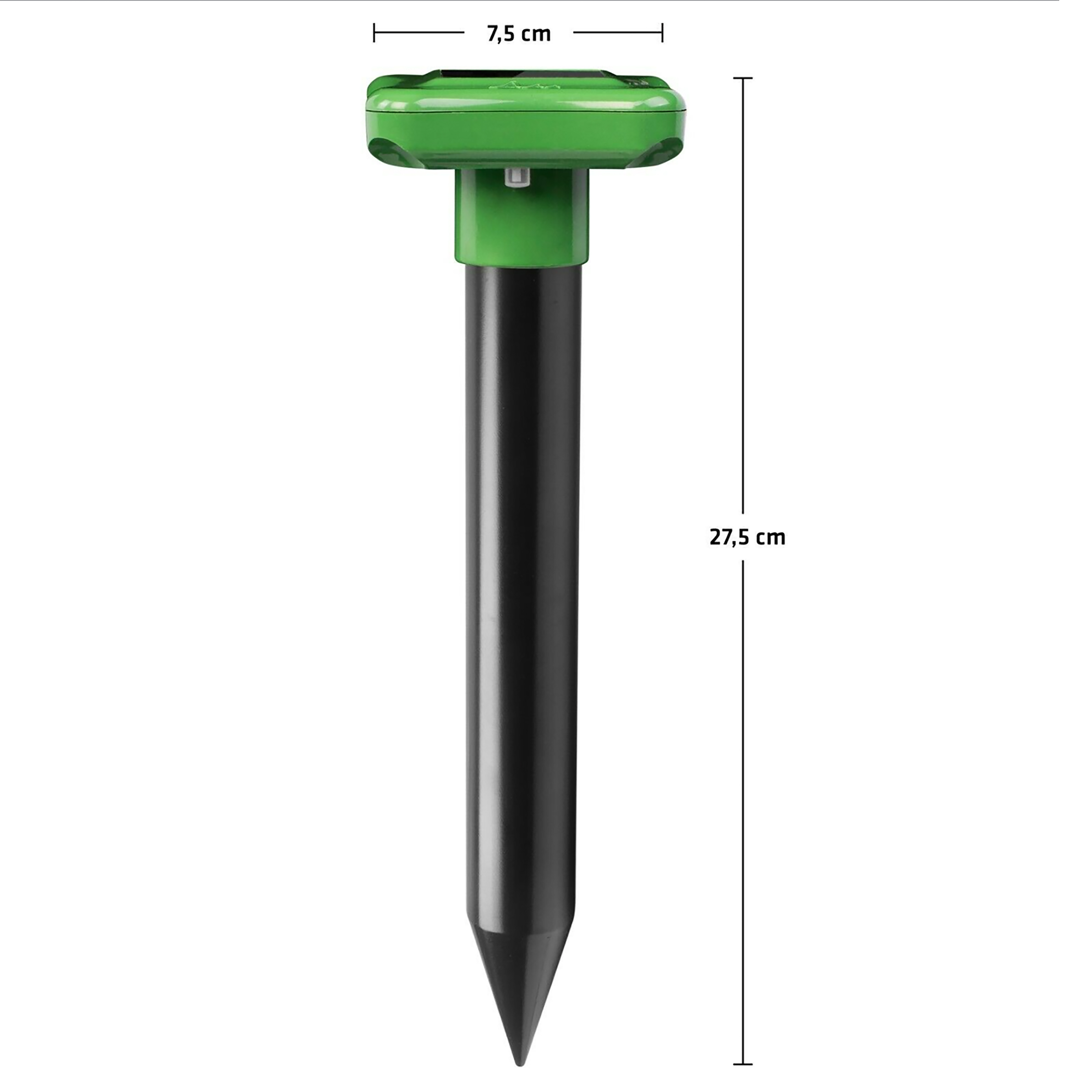 Son panneau solaire intégré recharge automatiquement la batterie interne, rendant l’appareil totalement autonome et écologique. Avec sa tête verte, il se fond parfaitement dans l’environnement, pour une protection discrète et continue.